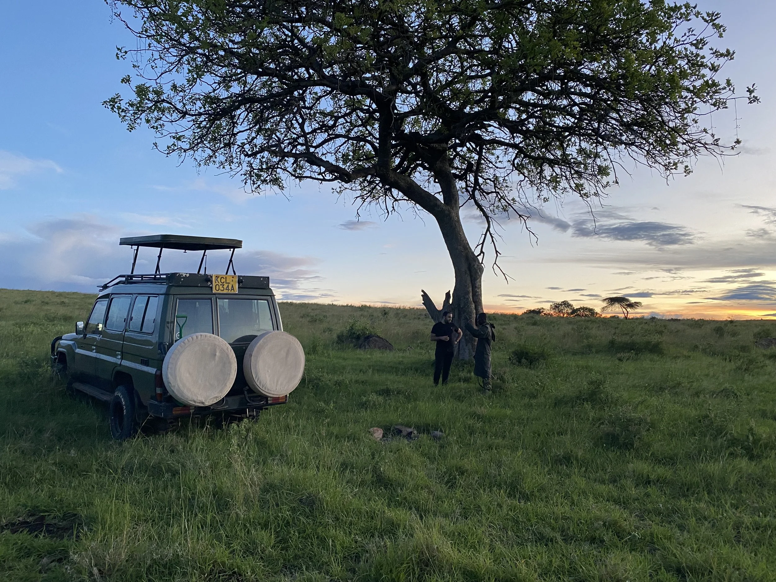 We’ve been told that Sand River is the best public campsite, we we drove there. We arrived barely at dusk. Driving is not allowed after sunset in the Maasai Mara. So we did not have time .
